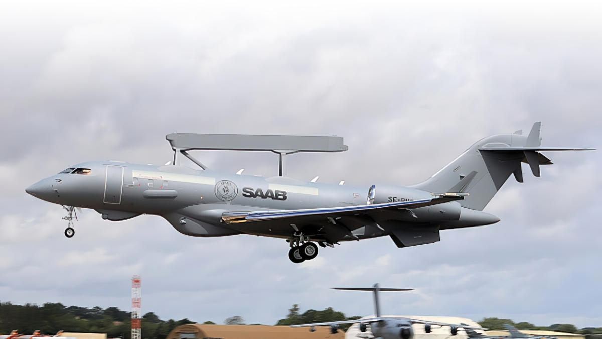 Saab GlobalEye -ilmavalvontakone. Kuvalähde: commons.wikimedia.org By Airwolfhound from Hertfordshire, UK – Globaleye, CC BY-SA 2.0.