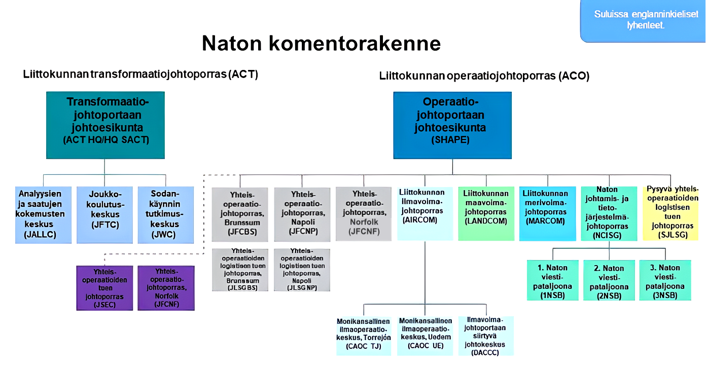 Naton komentorakenne. Kuvalähde: Valtioneuvoston Nato-sanasto 16.4.2025 (JFCNF lisätty)