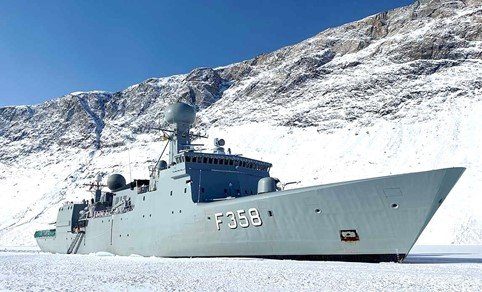 Thetis-klassens fregatt Triton i grönländska vatten. Bildkälla: forsvaret.dk.