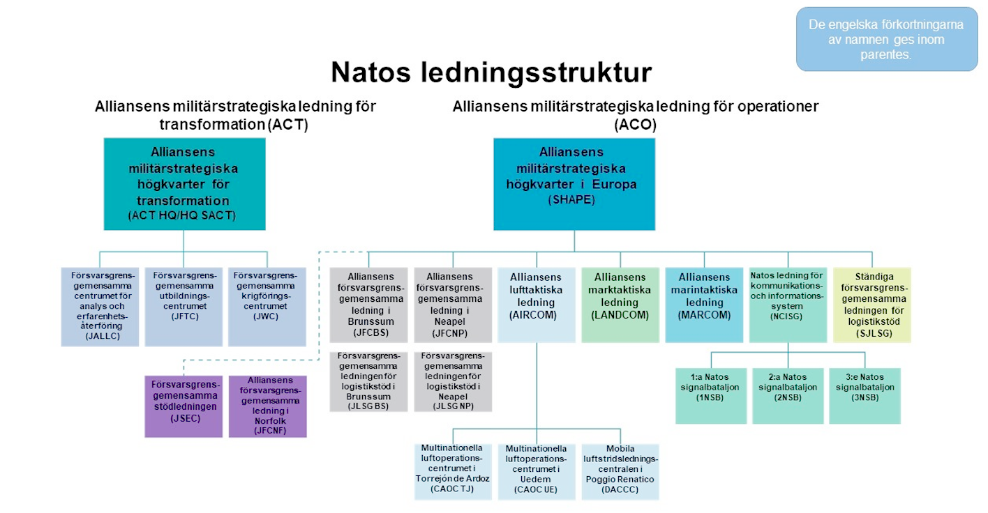 Natos befälsstruktur. Bildkälla: Statsrådets kansli 19.6.2023: Nato-sanasto